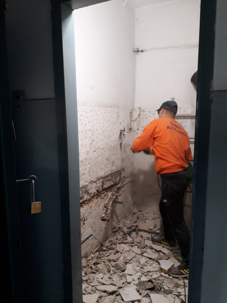 Ήδη τα συνεργεία της τεχνικής υπηρεσίας του Δήμου Κατερίνης έπιασαν δουλειά και υλοποιούν κάθε αναγκαία τεχνική παρέμβαση όπως π.χ. ελαιοχρωματισμούς, επιχρίσματα, νέους χώρους υγιεινής, προσβασιμότητας για τα άτομα με αναπηρία, ηλεκτρολογικές, υδραυλικές υποδομές, προκειμένου το κτίριο να αποκατασταθεί και να μετατραπεί σε σύγχρονο χώρο για τη νέα λειτουργική του χρήση.