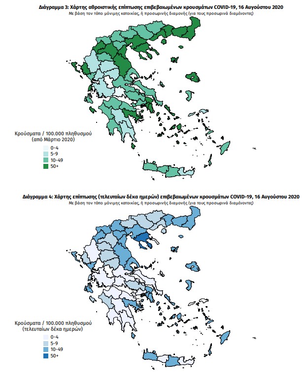 Ο χάρτης αποτυπώνει τη γεωγραφική κατανομή των συνολικών κρουσμάτων COVID-19 (από την αρχή της επιδημίας) ανά Περιφερειακή Ενότητα της χώρας, με βάση την δηλωθείσα διεύθυνση μόνιμης κατοικίας του ασθενούς, ή τη διεύθυνση προσωρινής διαμονής για τους τουρίστες και άλλους προσωρινά διαμένοντες στην Ελλάδα. Συμπεριλαμβάνονται τόσο κρούσματα με ιστορικό ταξιδίου (“εισαγόμενα”) όσο και κρούσματα με πιθανή εγχώρια μετάδοση.