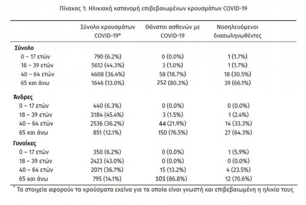 Η διάμεση ηλικία των θανόντων συμπολιτών μας ήταν τα 78 έτη και το 96.2% είχε κάποιο υποκείμενο νόσημα ή/και ηλικία 70 ετών και άνω.