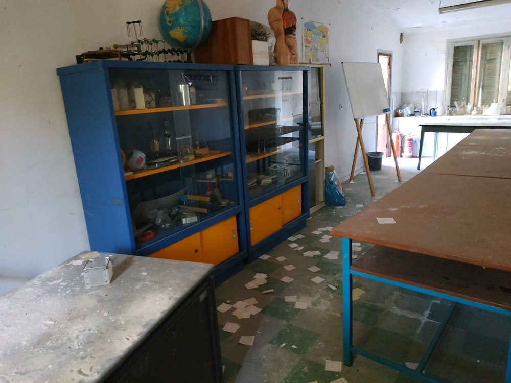 Δυστυχώς όμως στο Μουσικό Σχολείο Κατερίνης, το εργαστήριο φυσικών επιστημών δεν χρησιμοποιείται για εργαστηριακές ασκήσεις. Για την ακρίβεια δεν χρησιμοποιείται καθόλου, αφού δεν έχει ρεύμα και νερό και σοβάδες κρέμονται πάνω από τα κεφάλια όποιων γενναίων τολμήσουν να το επισκεφθούν.
