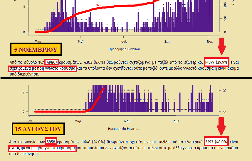 Σύμφωνα με τη χθεσινή ανακοίνωση του ΕΟΔΥ τα κρούσματα που ήταν γνωστής συρροής κι αλληλένδετα μεταξύ τους ήταν της τάξης του 29,1% (με τον υπολογισμό να γίνεται ωστόσο από την αρχή της πανδημίας) όταν στις 15 Αυγούστου αυτό το ποσοστό προσέγγιζε το 50%.