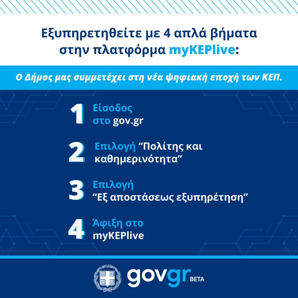 Στους 41 Δήμους και 47 Κέντρα Εξυπηρέτησης Πολιτών όλης της χώρας που συμμετέχουν στη διεύρυνση της πλατφόρμας myKEPlive του Υπουργείου Ψηφιακής Διακυβέρνησης, εντάσσεται ο Δήμος Κατερίνης.