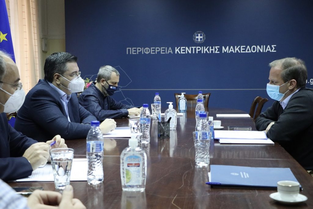 Η συνάντηση έγινε παρουσία του Αντιπεριφερειάρχη Υποδομών και Δικτύων Πάρι Μπίλλα και υπηρεσιακών στελεχών της Περιφέρειας Κεντρικής Μακεδονίας και του Υπουργείου.