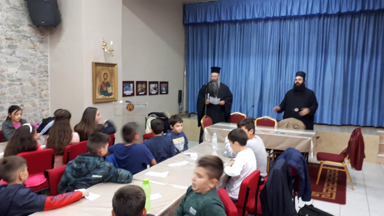 Ο Σεβασμιώτατος συνεχάρη τα παιδιά για την προθυμία τους να συμμετάσχουν και τους έδωσε συμβουλές για την πνευματική τους πορεία, ενώ εκείνα του αφιέρωσαν επίκαιρους ύμνους.