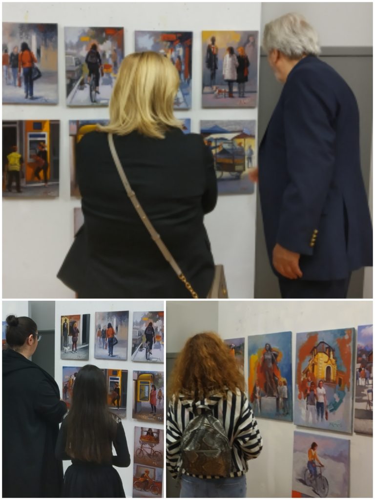 Η έκθεση, η οποία παρουσιάζει καθημερινά μεγάλη επισκεψιμότητα επικεντρώνεται σε εικόνες από την καθημερινή ζωή στην πόλη της Κατερίνης του χθες και του σήμερα, καθώς και σε ένα από τα αγαπημένα θέματα του δημιουργού, τις προσωπογραφίες μικρών διαστάσεων.