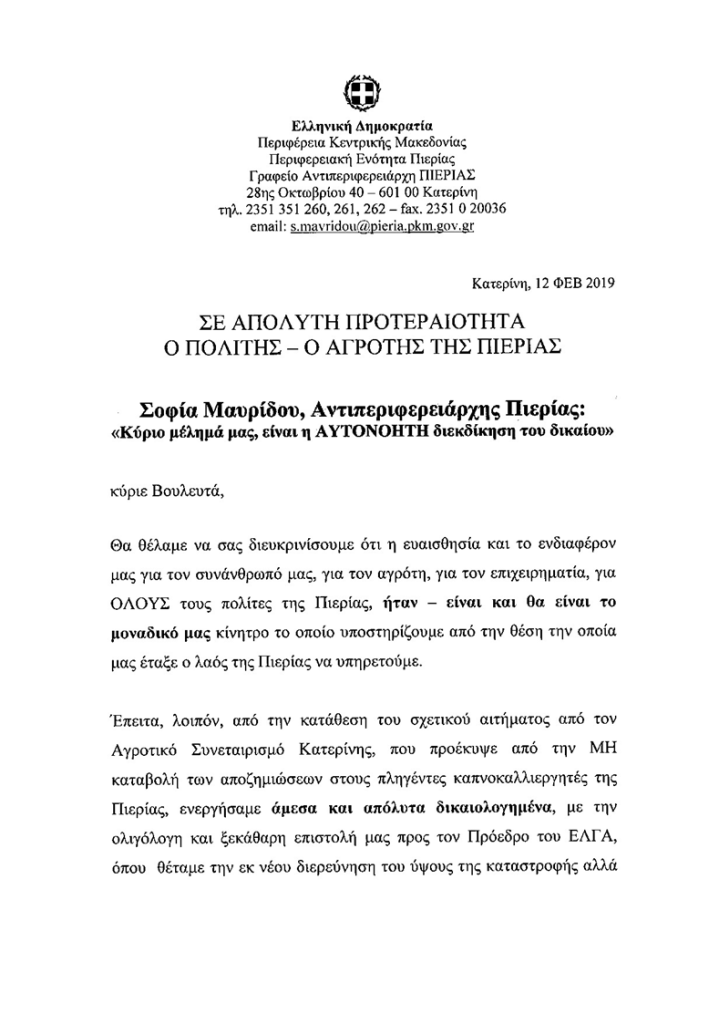 “Πόλεμος” δηλώσεων Τι απαντα η Αντιπεριφερειάρχης Σ. Μαυρίδου στον Βουλευτή Σ. Καστόρη Πολιτική 12 Φεβρουαρίου 201912 Φεβρουαρίου 2019Pieria Social