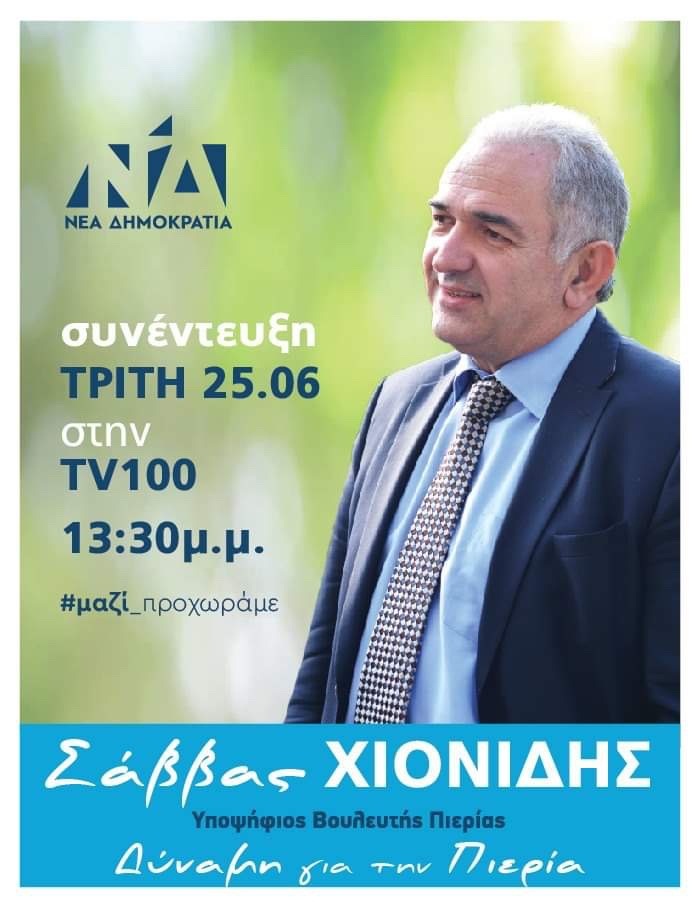 Συνέντευξη του Σάββα Χιονίδη σήμερα στις 13.30 στην TV100 με την Βιβή Ανδρίτσου Πολιτική 25 Ιουνίου 201925 Ιουνίου 2019Pieria Social