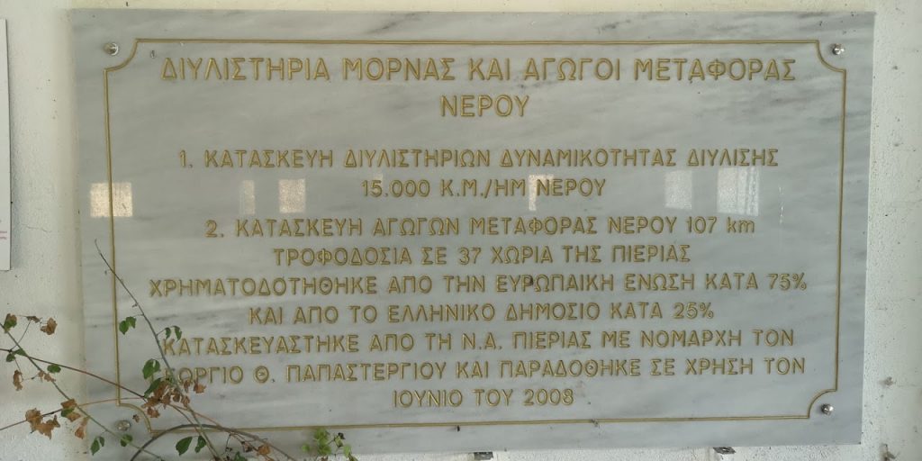 Παρότι βρισκόμαστε στο τέλος του Καλοκαιριού και μετά από 50 συνεχόμενες ημέρες ανομβρίας, με το παραπάνω υλικό αποδεικνύεται πως το φράγμα δεν είναι “στεγνό”, έτσι όπως διαδίδεται στα χωριά της Β. Πιερίας των οποίων οι κάτοικοι τις τελευταίες εβδομάδες πλένονται με εμφιαλωμένο νερό και πίνουν από υδροφόρες λέγοντας κυριολεκτικά “το νερό νεράκι”. Το φράγμα, ακόμη και εν μέσω ανομβρίας, διαθέτει σημαντικές ποσότητες νερού το οποίο μέσα από έναν αγωγό οδηγείται στο ρέμα χωρίς να φτάνει εκεί όπου θα έπρεπε: στις εγκαταστάσεις των διυλιστηρίων τα οποία κατασκευάστηκαν μαζί με ένα δίκτυο 100 χιλιομέτρων για να υδροδοτήσουν 37 χωριά της Βόρειας Πιερίας. Μέλη της Εθελοντικής Ομάδας Δράσης Ν. Πιερίας συναντήθηκαν χθες Πέμπτη 12 Σεπτεμβρίου 2019 με τον τέως Δήμαρχο Πύδνας και τέως πρόεδρο του Συνδέσμου Υδρευσης Ν. Πιερίας κ. Δημήτρη Βασιλειάδη όπως και τους προέδρους των χωριών Νέας Τραπεζούντας, Κούκου και Αλωνίων στους οποίους παρέδωσαν το παραπάνω φωτογραφικό υλικό. Αποτελεί ακλόνητη πεποίθηση μας πως η μοναδική λύση για την αντιμετώπιση της ανομβρίας η οποία ταλαιπωρεί χιλιάδες συμπολίτες μας στη Βόρεια Πιερία και ίσως σε λίγα χρόνια και κάποιες άλλες περιοχές του νομού, είναι η πλήρης εκμετάλλευση των υδάτινων πόρων που διαθέτει το φράγμα της Μόρνας, η επέκταση του και η άμεση επαναλειτουργία των εγκαταλελειμμένων διυλιστηρίων.Η σωστή δε λειτουργία των εγκαταστάσεων μπορεί να αποφέρει σημαντικά έσοδα στην καταχρεωμένη ΔΕΥΑ Κατερίνης.