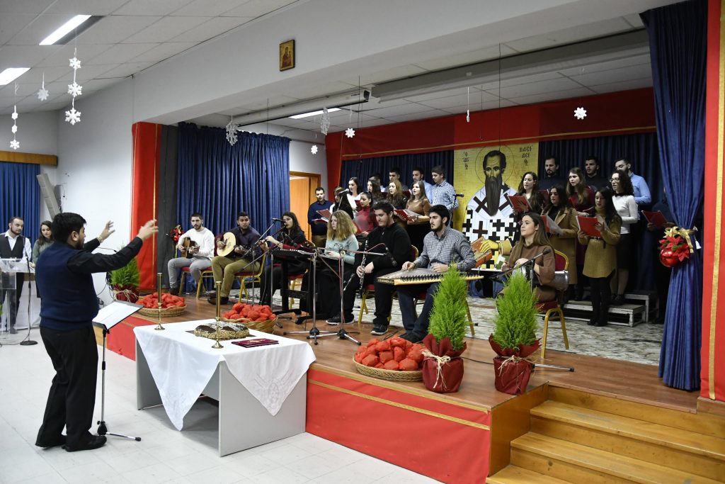 Το πρόγραμμα συνεχίστηκε με παραδοσιακά κάλαντα από Χορωδία Στελεχών του Γραφείου Νεότητας και τη συνοδεία μικτής Ορχήστρας του Μουσικού Σχολείου Κατερίνης και της Σχολής Βυζαντινής Μουσικής της Ιεράς Μητροπόλεως, υπό τη διεύθυνση του Δοξάκη Δεγρένη, μεταπτυχιακού φοιτητή Μουσικολογίας στο ΑΠΘ.
