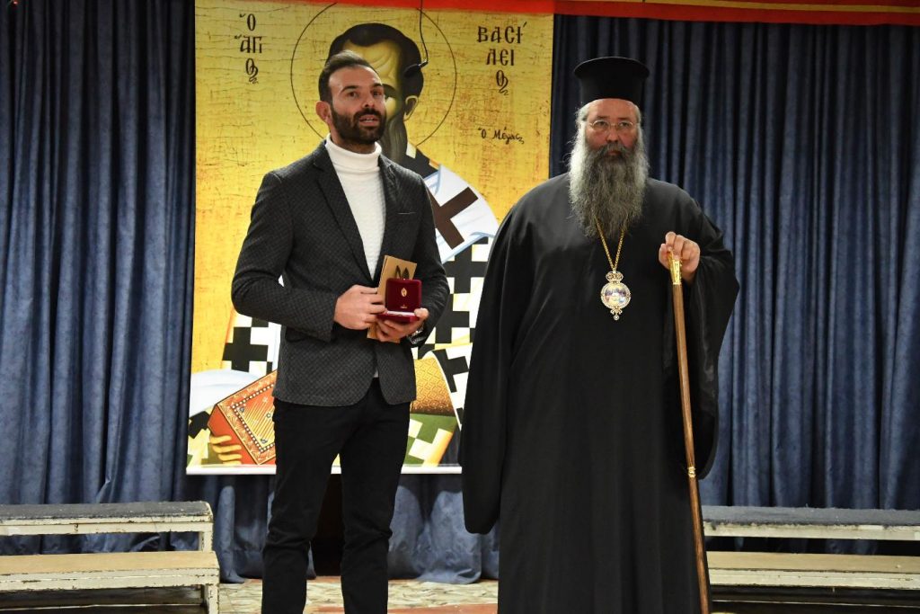 Οι βραβεύσεις ολοκληρώθηκαν με μια ιδιαίτερη βράβευση, καθώς τιμήθηκε ο πρωταθλητής χειροσφαίρισης και ολυμπιονίκης Σάββας Καρυπίδης. Συγκεκριμένα, ο Σεβασμιώτατος κ. Γεώργιος επέδωσε στον Σάββα Καρυπίδη το μετάλλιο της Αγίας Αικατερίνης, ανώτατη τιμητική διάκριση της τοπικής μας Εκκλησίας.