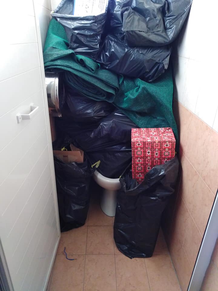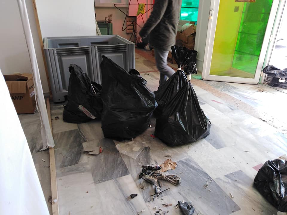 Είναι χαρακτηριστικό, ότι, βρέθηκαν πεταγμένα (ακόμη και στις τουαλέτες οι οποίες καθαρίστηκαν) υψηλού κόστους ιατρικά μηχανήματα (;), δεκάδες κλειστά κουτιά με μηχανήματα για παιχνίδια (π.χ. καπνούς κ.α.), καθώς και εκατοντάδες με τα αντίστοιχα υγρά. Μια χαώδης αποθήκη ηλεκτρολογικού υλικού, μηχανημάτων εικόνας και ήχου, με πεταμένα υλικά.