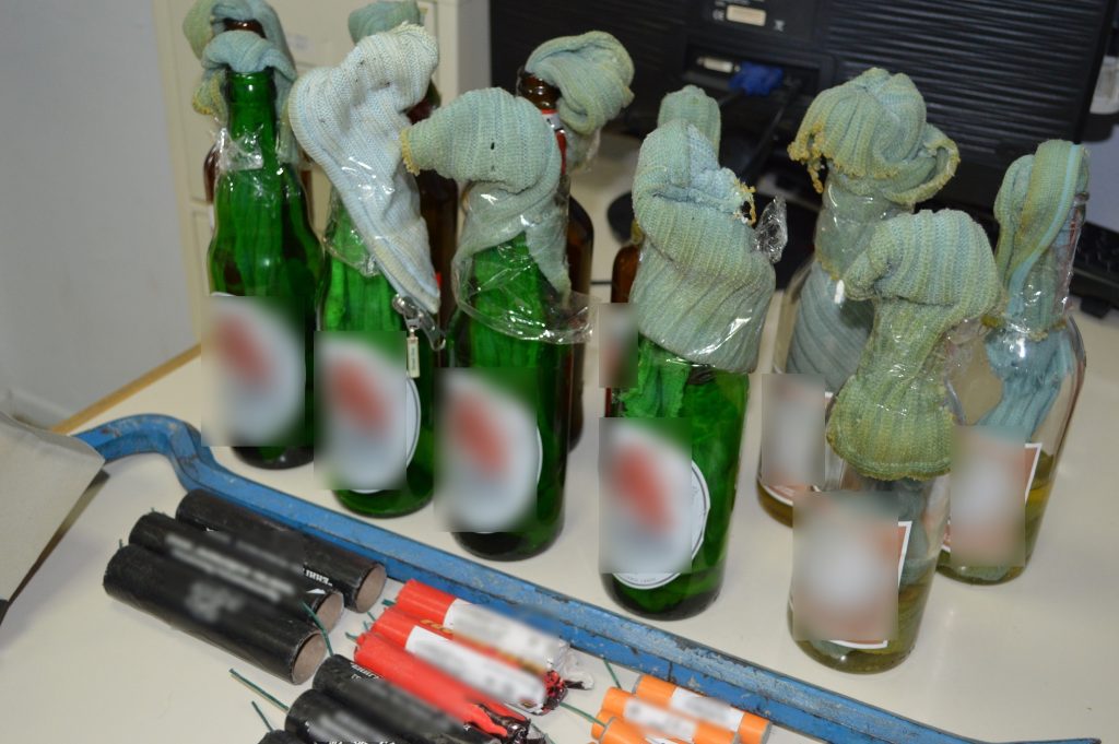 Τα συγκεκριμένα άτομα εντοπίστηκαν στο προαύλιο ιερού ναού και είχαν κρύψει στον περιβάλλοντα χώρο έντεκα αυτοσχέδιες βόμβες μολότοφ, κροτίδες και λοστό.