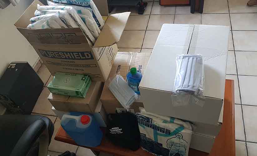 Στο υλικό περιλαμβάνονταν γάντια νιτριλίου και latex, αντισηπτικά χεριών και επιφανειών, μάσκες ατομικής προστασίας, κατανεμημένα σε επαρκείς ποσότητες, για να διανεμηθούν και στις δώδεκα (12) κοινότητες του Δήμου Δίου-Ολύμπου, με σκοπό την προστασία των εργαζομένων στις τοπικές κοινότητες αλλά και των εργαζομένων στο πρόγραμμα «Βοήθεια στο σπίτι». Επίσης υπήρχε ειδική μέριμνα υλικού ατομικής προστασίας για το τεχνικό προσωπικό του Δήμου Δίου-Ολύμπου.