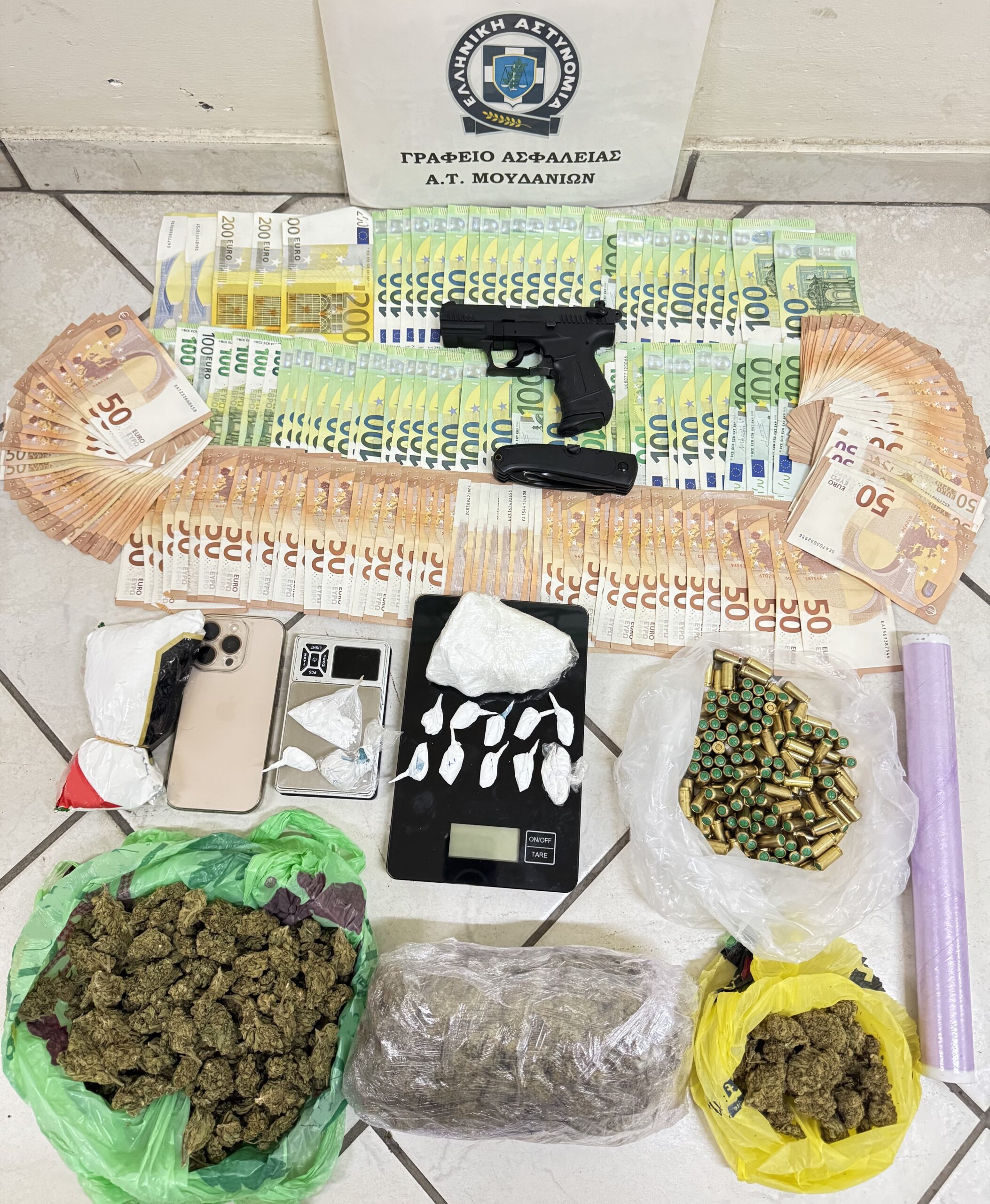 Μουδανιά: Κατασχέθηκαν ποσότητες κοκαΐνης, κάνναβης και MDMA, ένα πιστόλι κρότου και 15.900 ευρώ