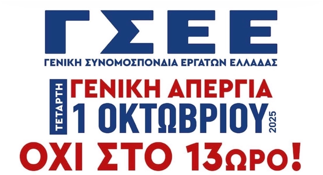 24ωρη Γενική Απεργία την Τετάρτη 1 Οκτωβρίου και συγκέντρωση στο Εργατικό Κέντρο στις 10:30 το πρωί – Όχι στο 13ωρο!