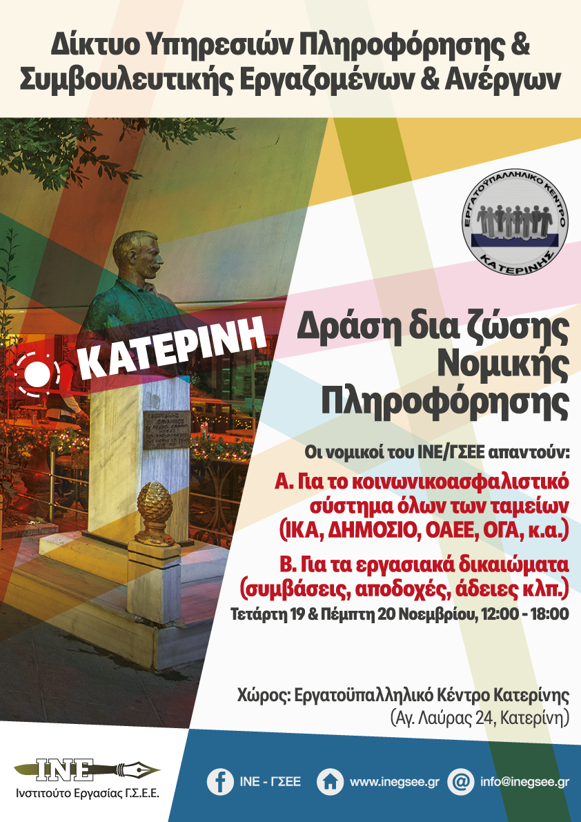 Εργατικό Κέντρο Κατερίνης: Δράση δια ζώσης νομικής πληροφόρησης σε θέματα εργατικού δικαίου – 19 & 20 Νοεμβρίου