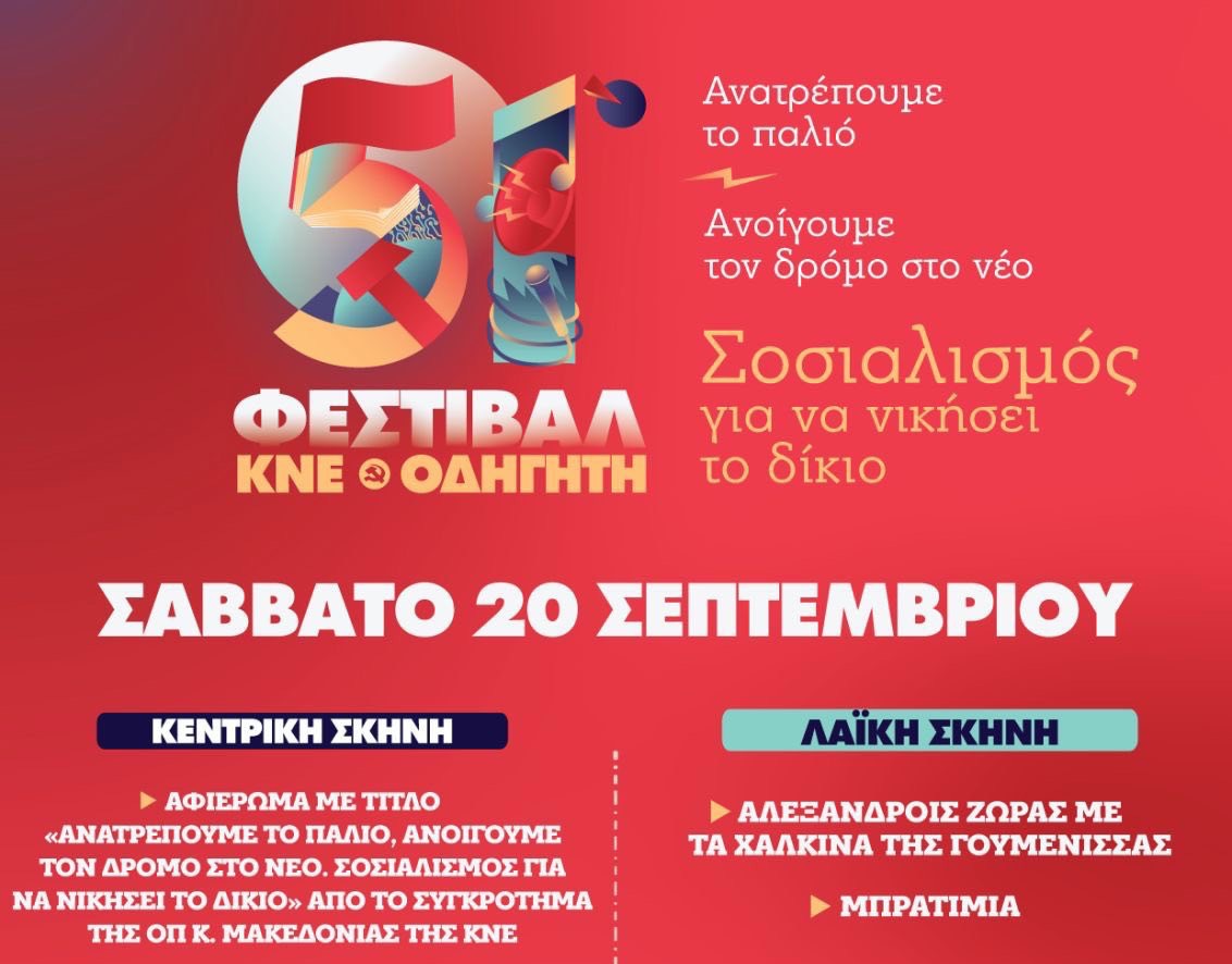Τ.Ε Πιερίας του ΚΚΕ: Το Σάββατο 20/9 θα αναχωρήσουν λεωφορεία για το 51ο Φεστιβάλ ΚΝΕ – Οδηγητή στη Θεσσαλονίκη