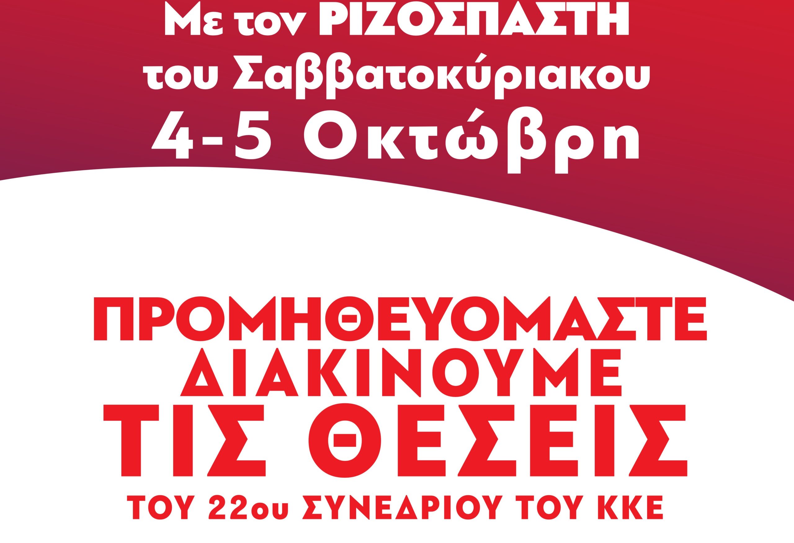 Το κεντρικό σύνθημα του 22ου Συνεδρίου είναι: «ΚΚΕ ΔΥΝΑΤΟ, ΣΤΑΘΕΡΟ ΣΕ ΚΑΘΕ ΔΟΚΙΜΑΣΙΑ, ΕΤΟΙΜΟ ΣΤΟ ΚΑΛΕΣΜΑ ΤΗΣ ΙΣΤΟΡΙΑΣ ΓΙΑ ΤΟΝ ΣΟΣΙΑΛΙΣΜΟ». Το σύνθημα αποτυπώνει και το βασικό θέμα του Συνεδρίου, δηλαδή την ανάγκη το Κόμμα να εναρμονιστεί πλήρως και με πιο γρήγορους και αποτελεσματικούς ρυθμούς με το επαναστατικό του Πρόγραμμα και το Καταστατικό του, να […]