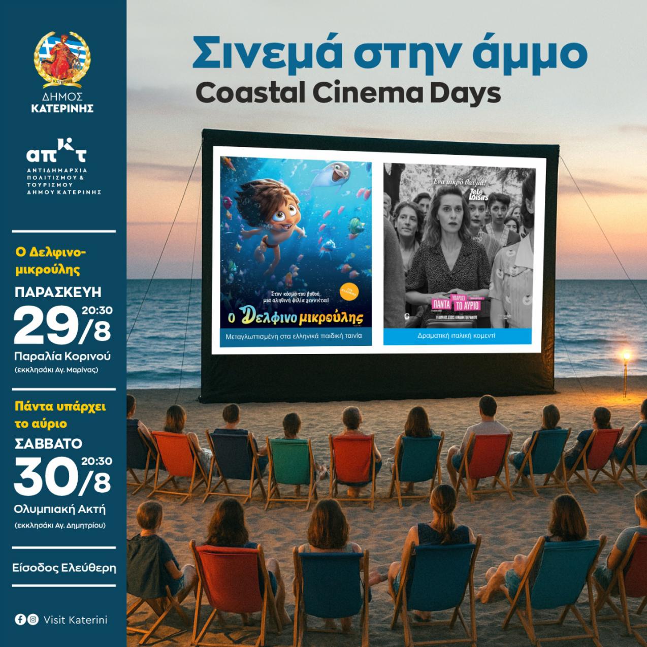 Δήμος Κατερίνης – Coastal Cinema Days: Δύο καλοκαιρινές βραδιές «Σινεμά στην Άμμο», σήμερα και αύριο Σάββατο, σε Κορινό και Ολυμπιακή Ακτή