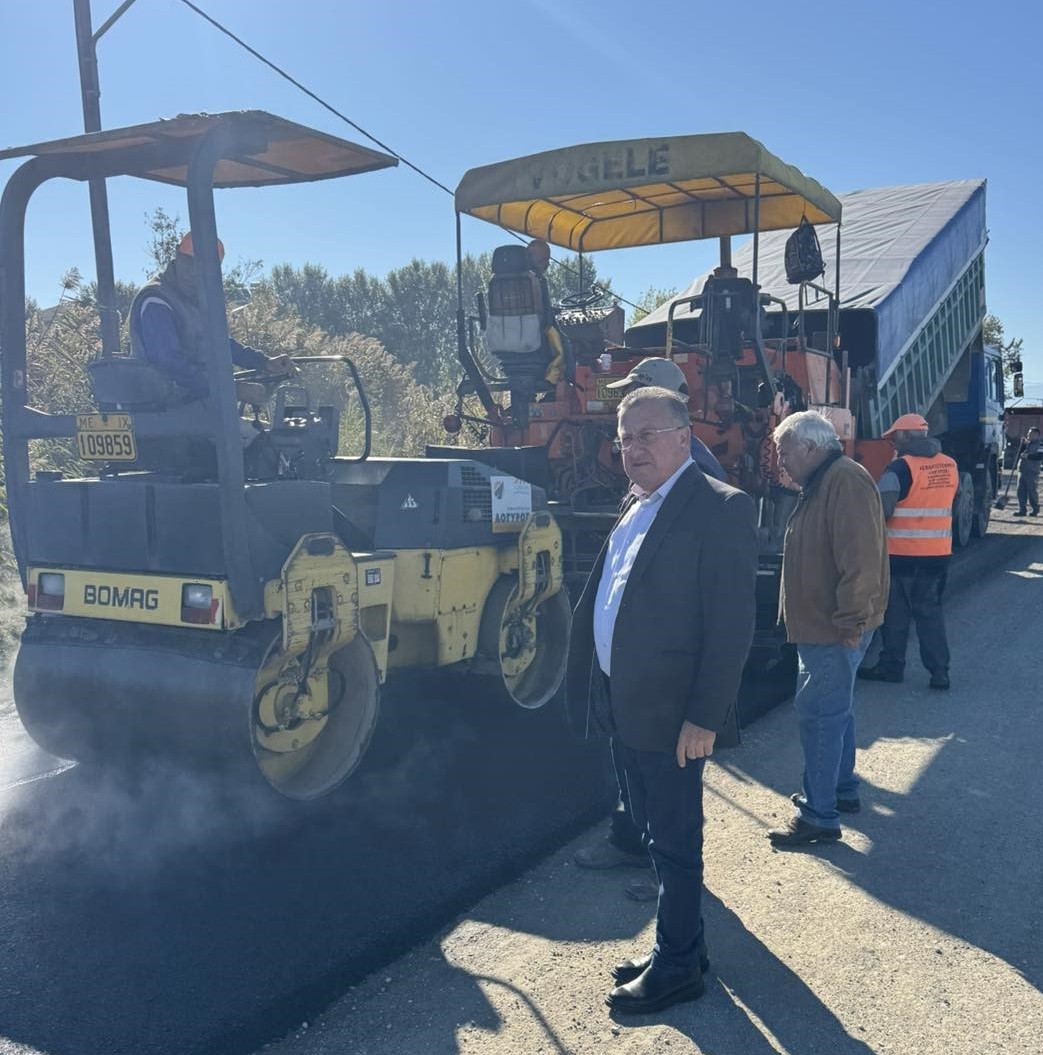 Αυτοψία του Δημάρχου Κατερίνης σε έργα αποκατάστασης ζημιών από την κακοκαιρία «Άριελ» – Ασφαλτόστρωση στον Κορινό