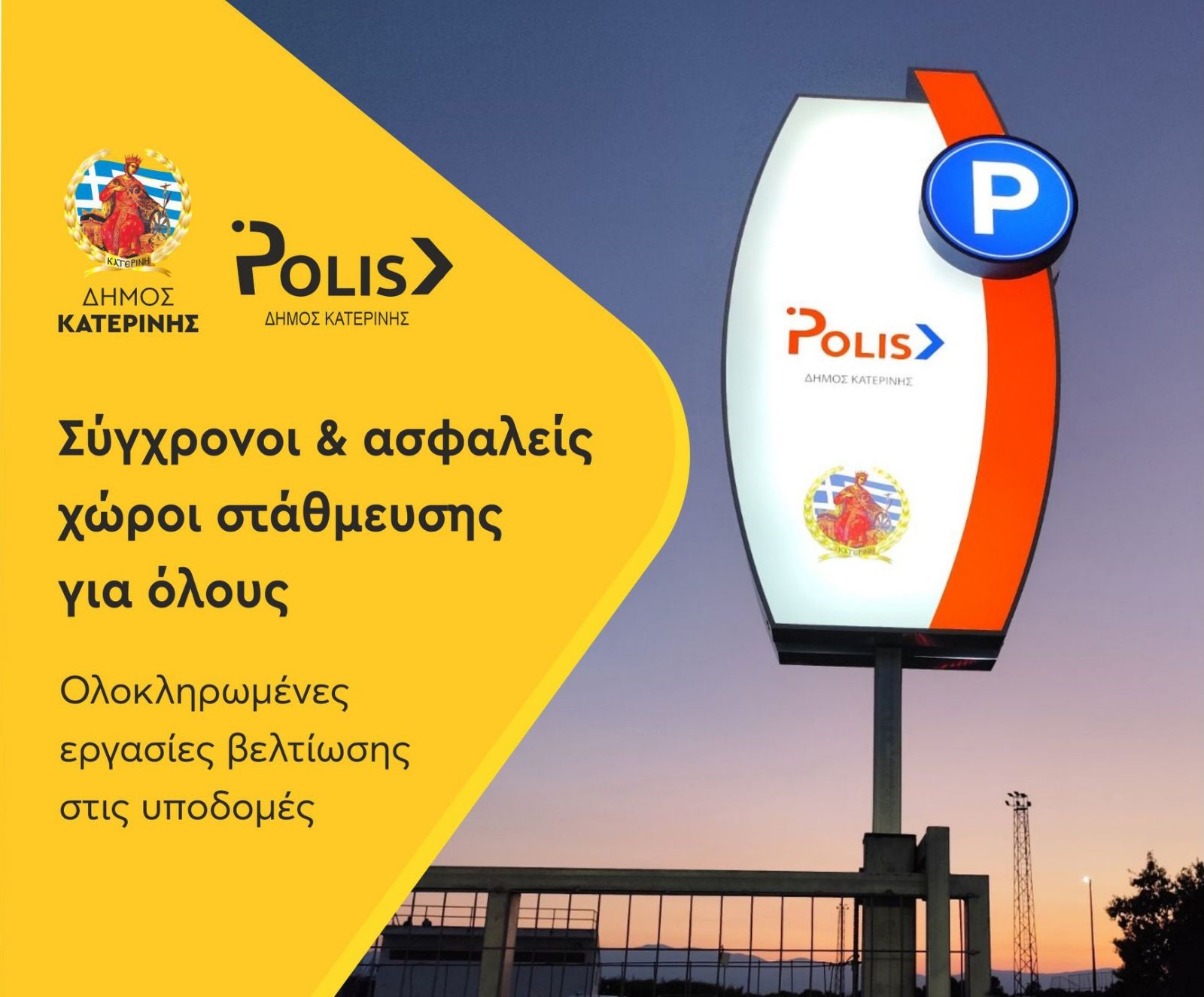 Δήμος Κατερίνης – Δημοτική επιχείρηση Πάρκινγκ «ΠΟΛΙΣ Α.Ε.»: Σύγχρονοι & ασφαλείς χώροι στάθμευσης για όλους