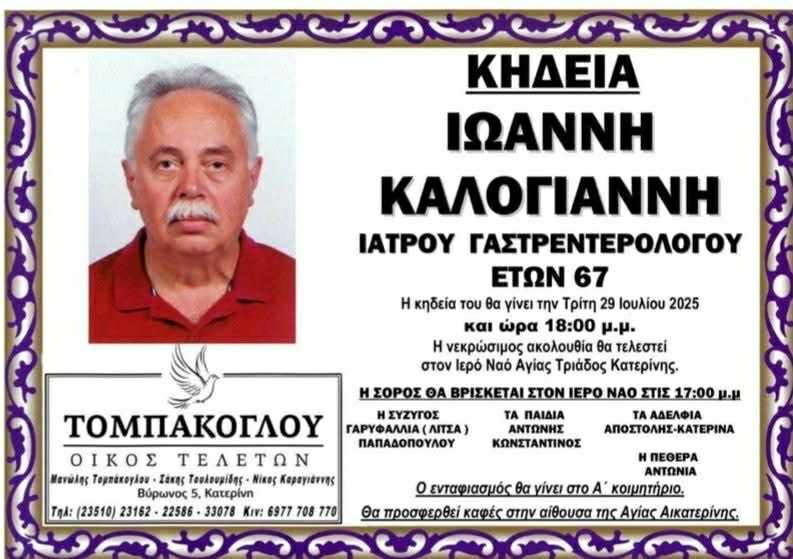 Με την αναγγελία της εκδημίας του Γεωργίου Τζημίκα πατρός της συνεργάτιδας του γραφείου τύπου του Οργανισμού Φεστιβάλ Ολύμπου, Ηρώς, ο ΟΡ.ΦΕ.Ο. εκφράζει τα ειλικρινή συλλυπητήρια στην οικογένεια του εκλιπόντος. Ο Θεός να αναπαύσει την ψυχή του και να δίνει παρηγοριά στους οικείους. Κατερίνη 17 Σεπτεμβρίου 2025 Ο πρόεδρος ο γενικός γραμματέας Γρηγόρης Παπαχρήστος […]