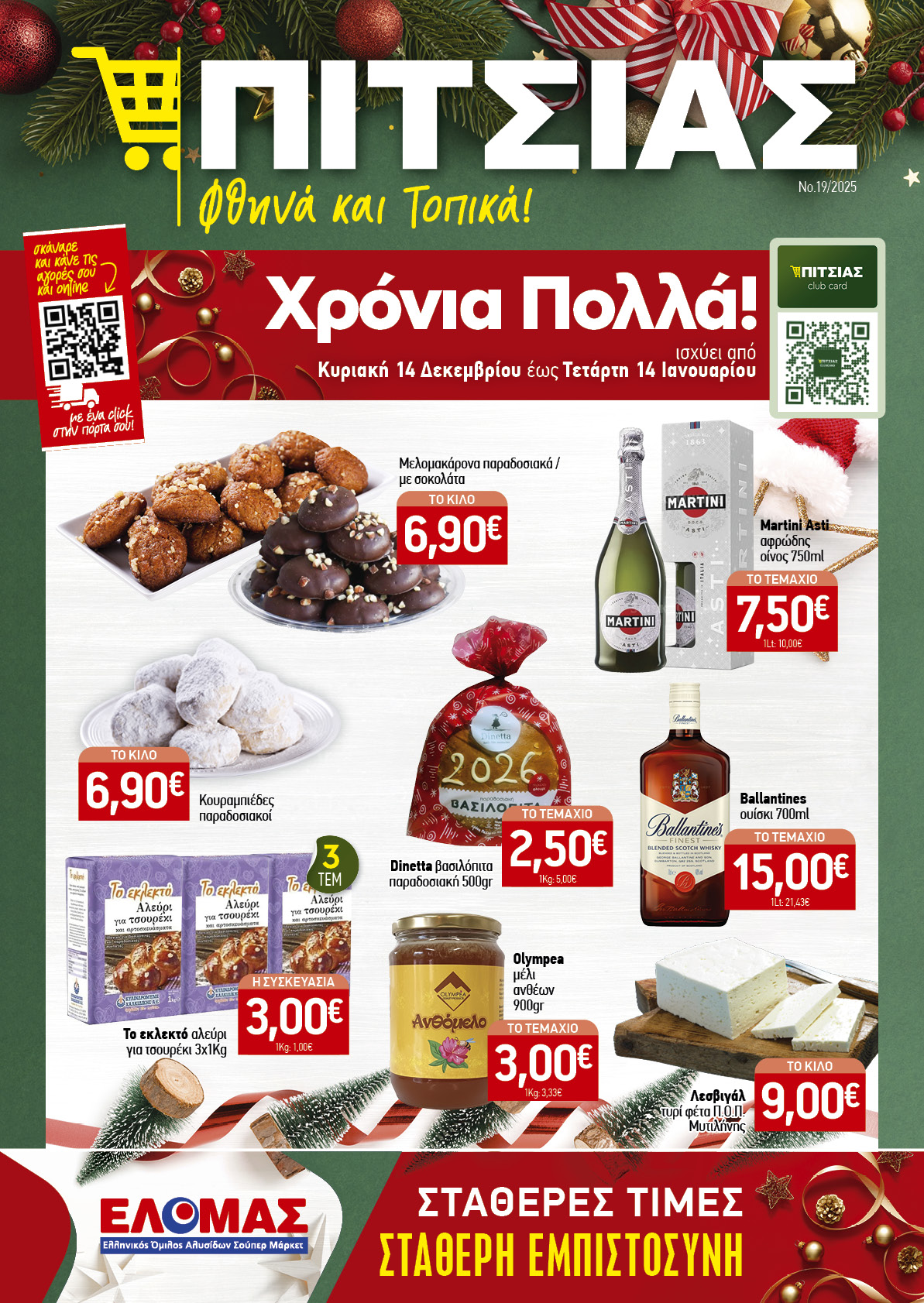 - Καλά Χριστούγεννα από τα ΠΙΤΣΙΑΣ ΜΑΡΚΕΤ – Νέο φυλλάδιο από 14/12 έως και 14/01 13 Δεκεμβρίου 2025
