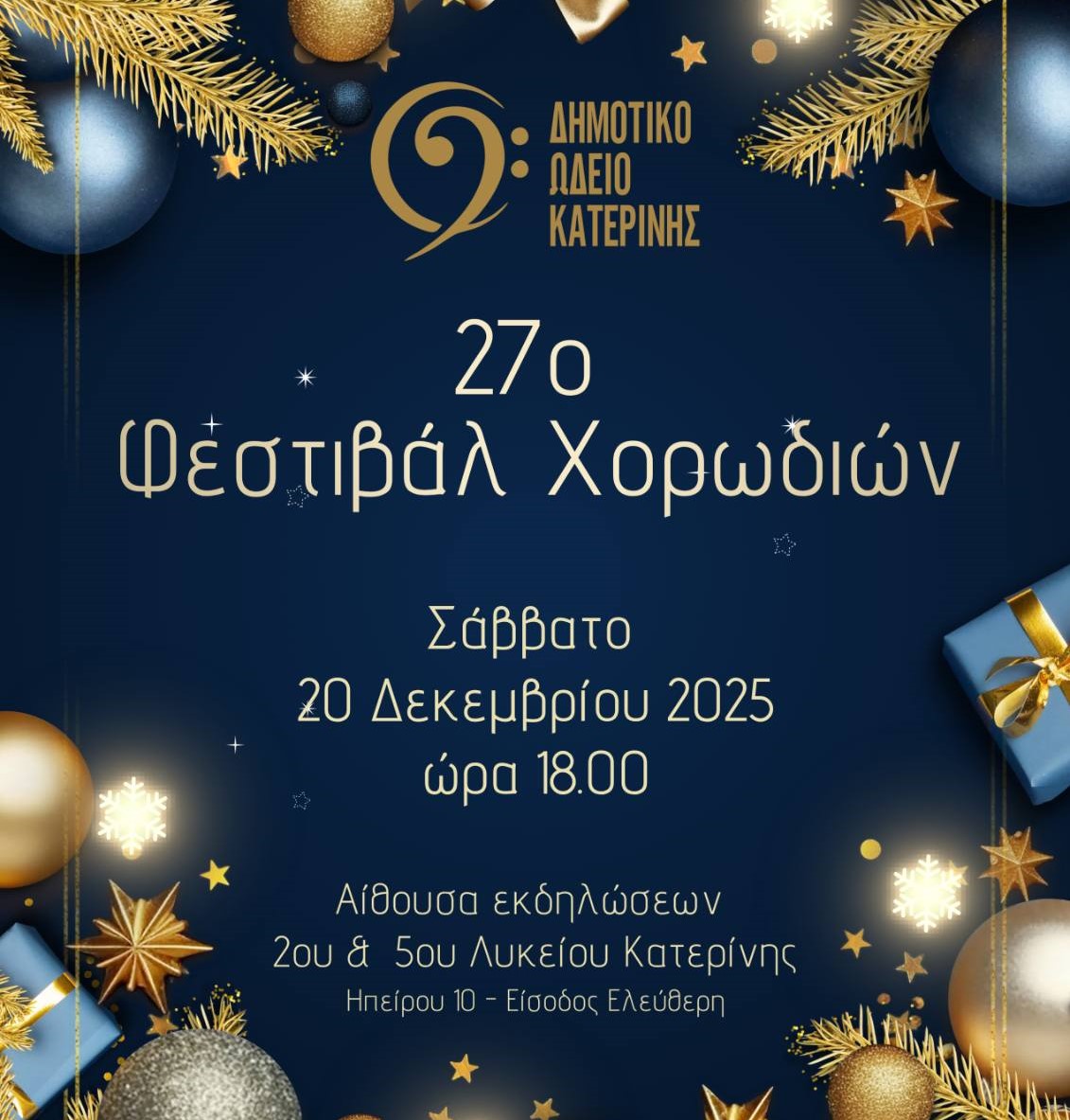 - 27ο Φεστιβάλ Χορωδιών από το Δημοτικό Ωδείο Κατερίνης 18 Δεκεμβρίου 2025