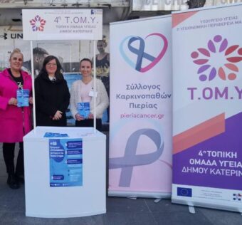 Με στόχο την προάσπιση της δημόσιας υγείας και την προώθηση της πρόληψης, ο Σύλλογος Καρκινοπαθών Πιερίας συμμετείχε ενεργά στην ενημερωτική δράση που διοργάνωσε η 4η Τ.ΟΜ.Υ. Κατερίνης, την Δευτέρα 30 Μαρτίου 2026, στην Κεντρική Πλατεία Κατερίνης. Καθώς ο Μάρτιος είναι ο μήνας ευαισθητοποίησης για τον καρκίνο του παχέος εντέρου, η υπεύθυνη του γραφείου του Συλλόγου […]