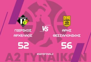 - Α2 Εθνική Γυναικών: Πιερικός Αρχέλαος – Άρης Θεσσαλονίκης 52-56 (Vid) 5 Απριλίου 2026