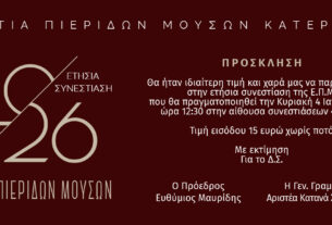 - Χειμωνιάτικες Ψηφίδες Πολιτισμού – Η συναυλία με τον συνθέτη Γιώργο Καζαντζή μετατίθεται στο 55ο Φεστιβάλ Ολύμπου 2026 5 Ιανουαρίου 2026