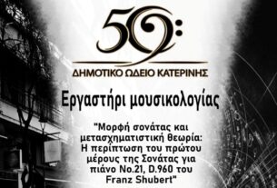 - Δημοτικό Ωδείο Κατερίνης: Εργαστήρι μουσικολογίας – Το Σάββατο 31 Ιανουαρίου στην αίθουσα Β’ ορόφου του ΔΩΚ 14 Ιανουαρίου 2026