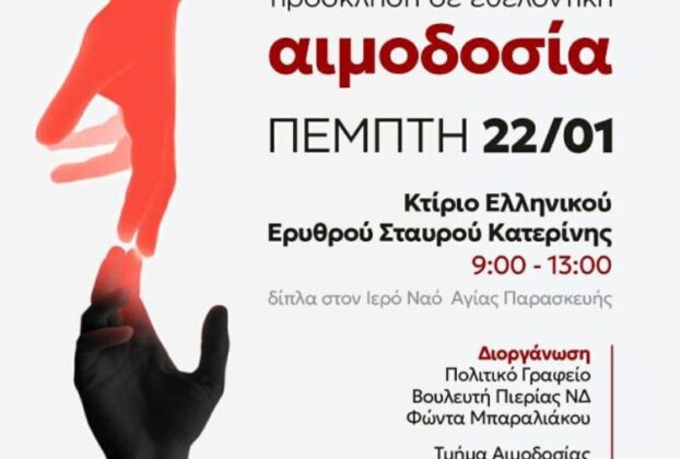 - Φ.Μπαραλιάκος: Την Πέμπτη 22/1 η καθιερωμένη ετήσια εθελοντική αιμοδοσία του Πολιτικού του Γραφείου 19 Ιανουαρίου 2026