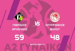 - Α2 Εθνική Κατηγορία Γυναικών: Πιερικός Αρχέλαος – Ολυμπιακός Βόλου 59-48 18 Ιανουαρίου 2026