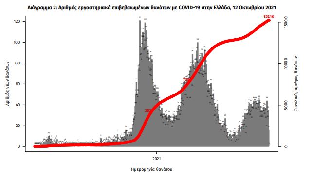 Οι νέοι θάνατοι ασθενών με COVID-19 είναι 32, ενώ από την έναρξη της επιδημίας έχουν καταγραφεί συνολικά 15.210 θάνατοι. Το 95.3% είχε υποκείμενο νόσημα ή/και ηλικία 70 ετών και άνω.