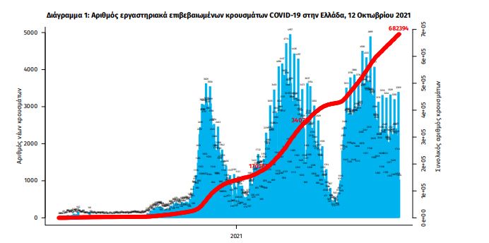 Τα νέα εργαστηριακά επιβεβαιωμένα κρούσματα της νόσου που καταγράφηκαν τις τελευταίες 24 ώρες είναι 3.065, εκ των οποίων 6 εντοπίστηκαν κατόπιν ελέγχων στις πύλες εισόδου της χώρας. Ο συνολικός αριθμός των κρουσμάτων ανέρχεται σε 682.394 (ημερήσια μεταβολή +0.5%), εκ των οποίων 50.9% άνδρες.